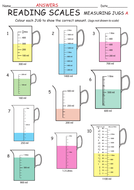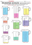 KS2 Maths Reading Scales on a Measuring Jug Differentiated ... Practise reading scales on measuring jugs with these differentiated worksheets. There is a range of scales with intervals of 10ml, 20ml, 25ml, 50ml and 100ml. An extra level of problem-solving is built into the activity, as the children have to find the total amount of liquid in multiple jugs. When reading the measurements they will need to check that they have recognised the intervals on each ...